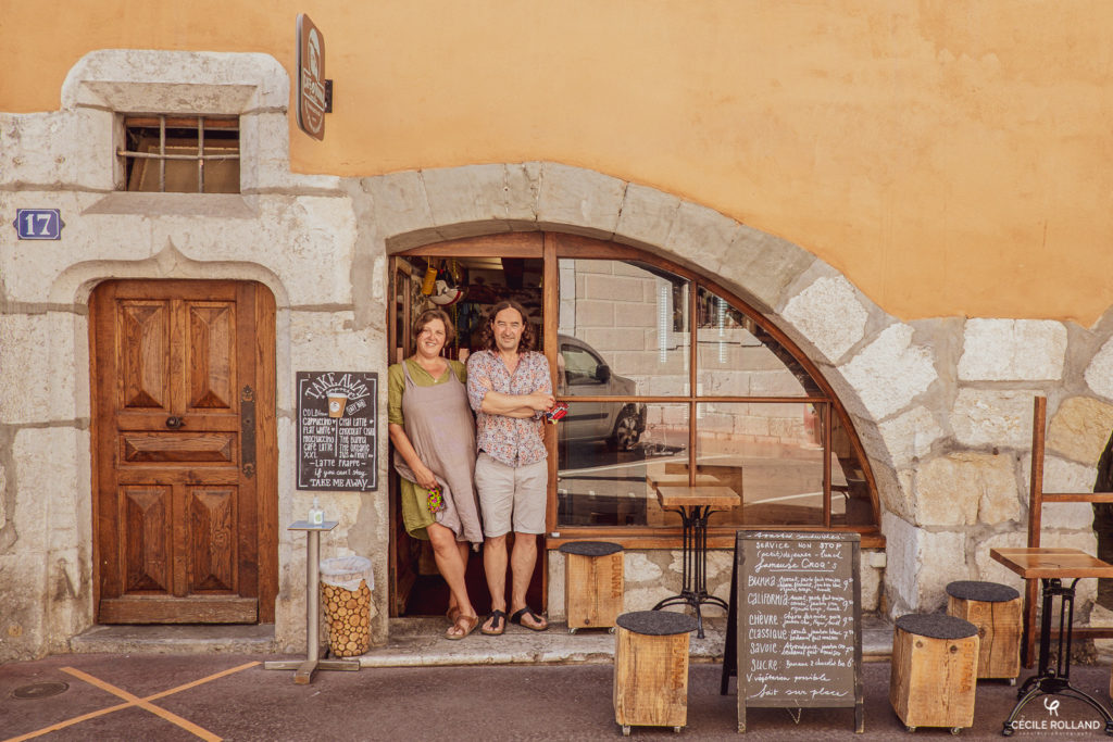 Le projet : en juillet 2020, guidée par mon intuition et mon cœur, j’ai commencé à réaliser des portraits de commerçants.es d’Annecy. Mon idée était de les mettre en Lumière car pour moi les commerces indépendants sont le poumon d’une ville. Les photos sont prises sur les pas de porte, « comme on faisait avant », où l’ensemble de la Famille trônait fièrement devant son commerce !